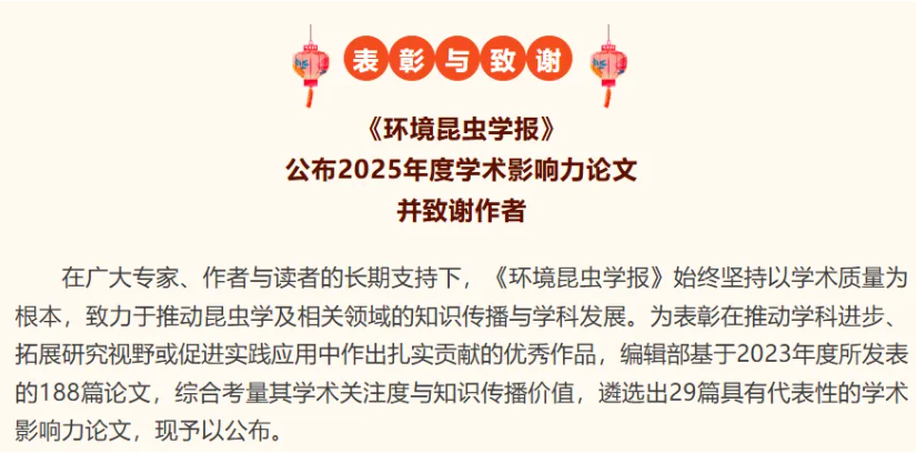 喜訊!云飛科技董事長周國濤參與撰寫的論文榮膺《環(huán)境昆蟲學報》2025年度學術影響力論文